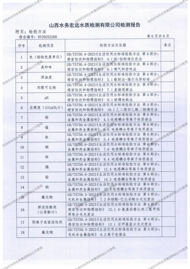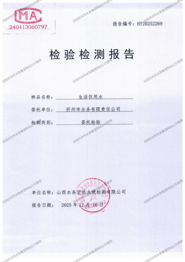 忻州城區(qū)公共供水水源水、出廠水、管網(wǎng)水、管網(wǎng)末梢水2025年12月份水質(zhì)信息公示