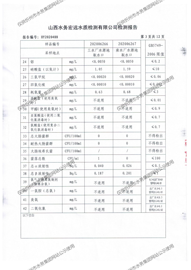 忻州城區(qū)公共供水水源水、出廠水、管網(wǎng)水、管網(wǎng)末梢水2020年7月份水質(zhì)信息公示