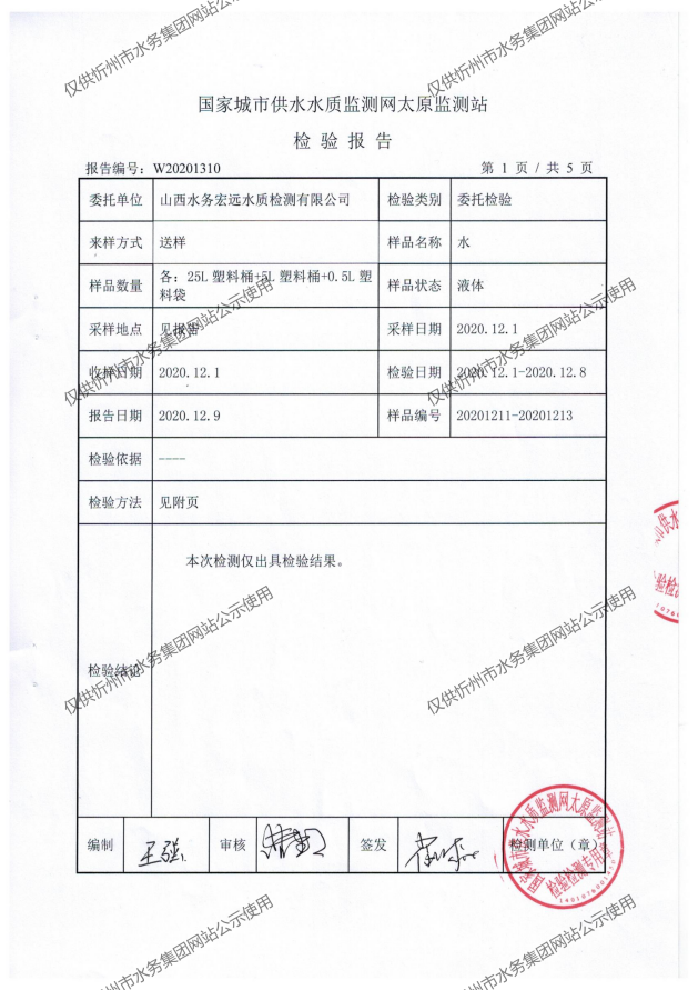 2020年忻州城區(qū)公共供水南水廠、三水廠、云中水廠出廠水106項(xiàng)水質(zhì)全分析